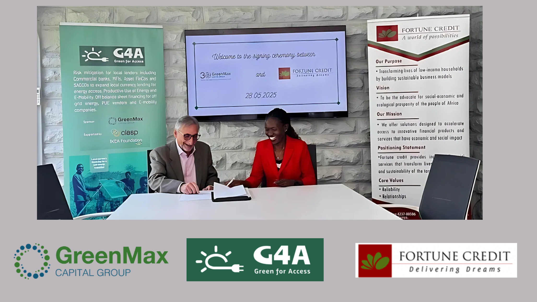 Nairobi, Kenya | June 3, 2025 — Fortune Credit Limited and Green for Access Fund LLC (G4A) have signed an enhanced risk mitigation agreement to catalyze access to climate-smart technologies for productive use across Kenya. This new facility builds on a successful earlier partnership and is designed to significantly scale Fortune Credit’s lending to individuals, farmers, and micro- and small enterprises (MSEs).